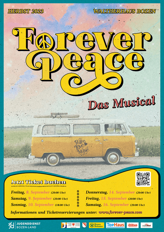 Mit dem Stück „Forever Peace“ ist eine neue Geschichte entstanden - ein Musical ähnlich einem Roadmovie - vollgepackt mit jeder Menge musikalischer Highlights aus den 60er und 70er Jahren. „Das Stück soll die Zuschauer in die Zeit der Hippiebewegung zurückversetzen, in die Zeit in der Plattenspieler die Wohnzimmer schmückten, in der das Verlangen nach Freiheit und Liebe in der Luft lag und in der Blumenkinder ihre Sehnsucht nach Frieden in die Welt streuten“, so Autor Günther Unterkofler.