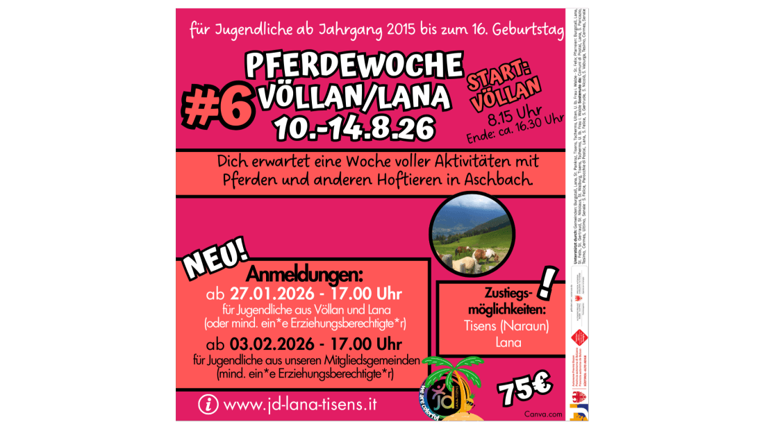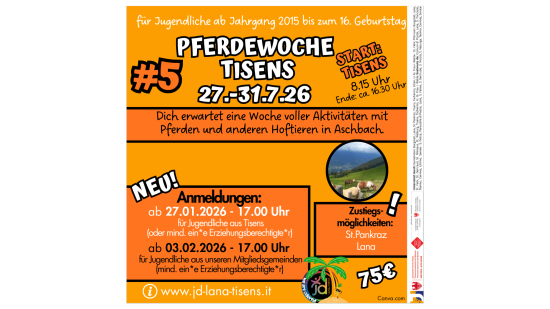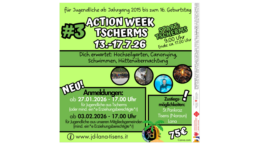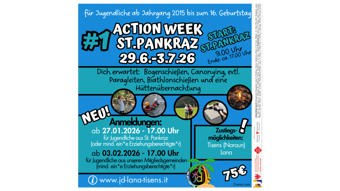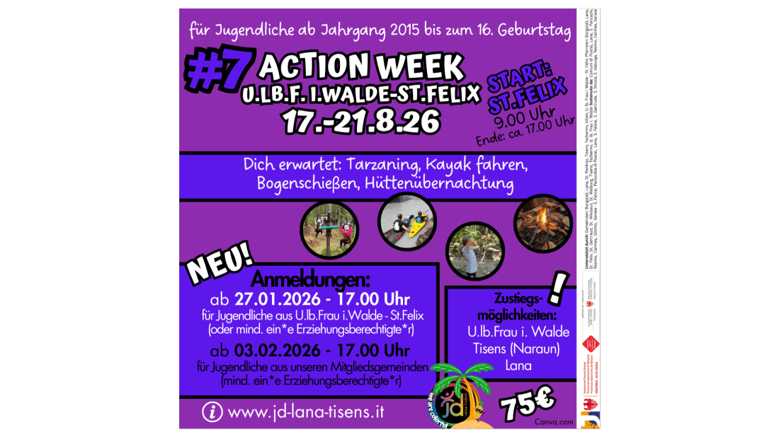 NEU!!! Vom 27.01.-03.02. haben die Jugendlichen aus der jeweiligen Startgemeinde Vorrang bei der Anmeldung.