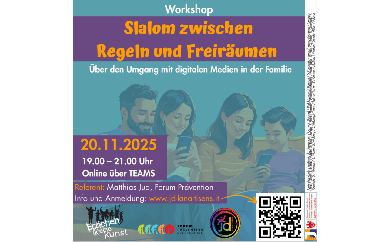 Workshop: Slalom zwischen Regeln und Freiräumen Die Veranstaltung findet in deutscher Sprache statt. L'evento si svolgerà in lingua tedesca. Anmeldung Vorname, Nachname Teilnehmer*in / nome, cognome partecipante Wohnort / residenza Email Datenschutz Ich nehme zur Kenntnis, dass die Verarbeitung der personenbezogenen Daten ausschließlich zur Abwicklung des Programmes und zur Erfüllung der gesetzlichen Pflichten erfolgt. Das Datenschutzinformationsblatt gemäß der Europäischen Datenschutzgrundverordnung (DSGVO 679/2016) finden Sie hier. Protezione dei dati Prendo atto che i dati personali saranno trattati esclusivamente per la gestione del programma e per l'adempimento degli obblighi legali. Cliccare qui per l'informativa sulla protezione dei dati ai sensi del Regolamento generale (EU) sulla protezione dei dati (RGPD 679/2016). Der Zugangslink zum Workshop wird kurz vor der Veranstaltung an die angegebene E-Mail Adresse gesendet. Bitte kontrollieren Sie auch ihren Spam-Ordner. Il link d'accesso viene mandato poco prima dell'evento all'indirizzo e-mail indicato. Si prega di controllare anche la sua cartella Spam. Anmelden / Invia