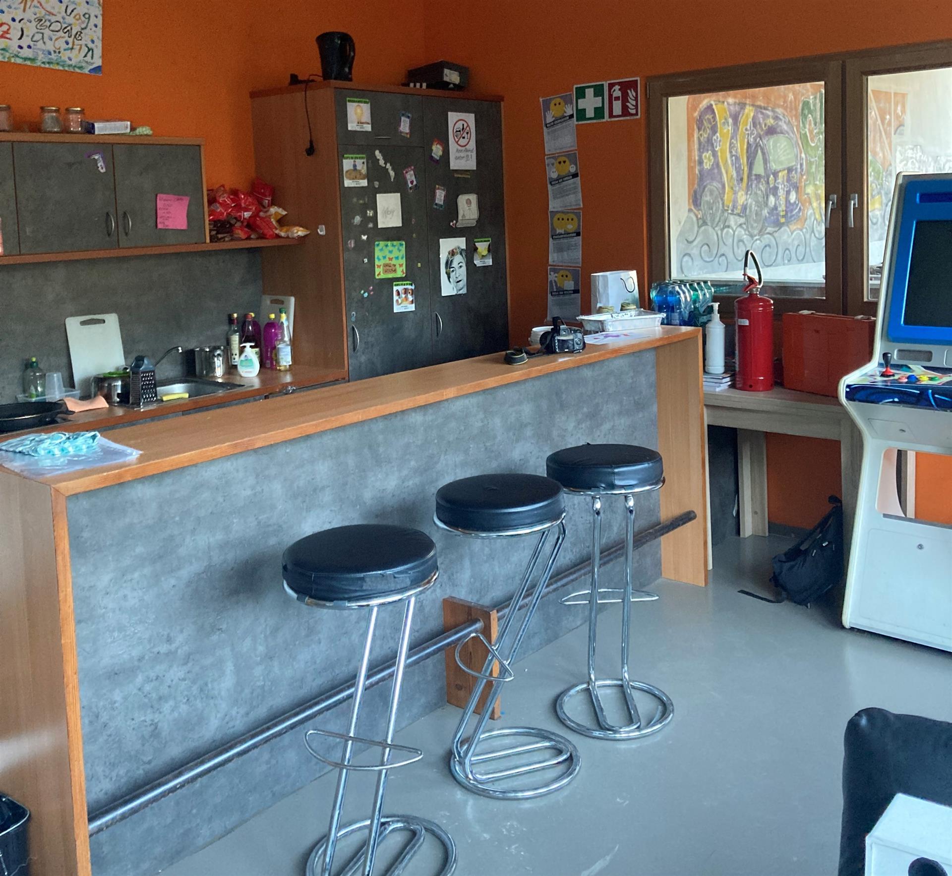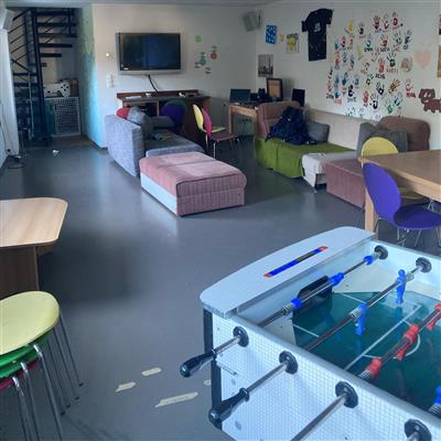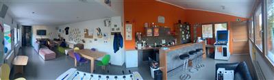 Der Treff befindet sich neben der Feuerwehrhalle. Auf zwei Ebenen gibt es einen großen Fernseher, Calcetto, diverse Spiele, einen großzügigen Barbereich, eine Stereoanlage sowie eine gemütliche, überdachte Terrasse inklusiv Grill.