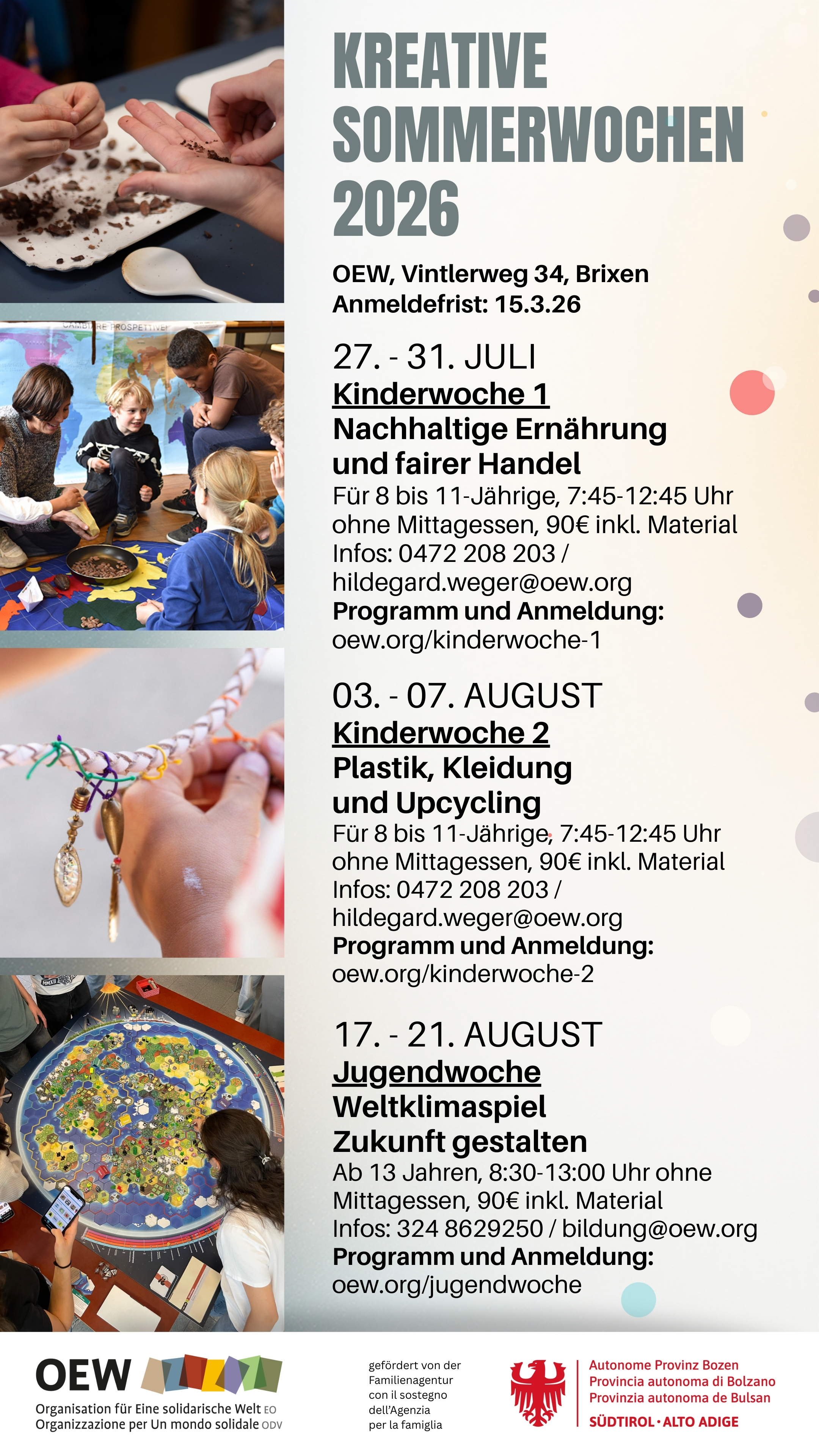 OEW - Organsiation für Eine solidarische Welt - bietet heuer erstmal Sommerwochen für Kinder und Jugendliche an, bei denen die Nachhaltigkeit im Mittelpunkt steht: