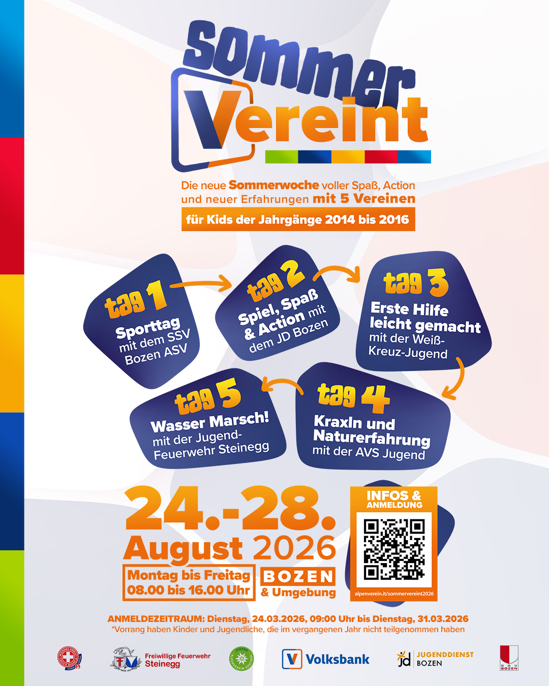 Anmeldung: zwischen Dienstag, 24. März und Dienstag, 31. März 2026 bei alpenverein.it/sommervereint