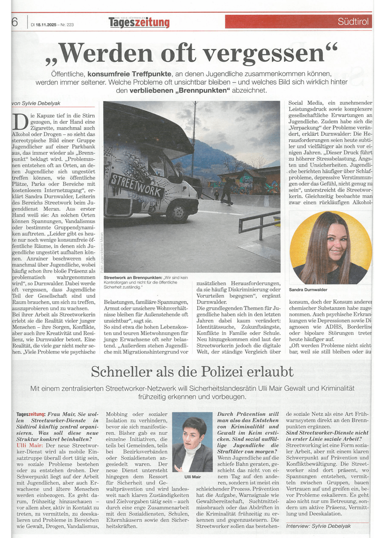 „Wir sind kein Kontrollorgan. Streetwork ist für die Jugendlichen da – nicht für die öffentliche Sicherheit.“, Sandra Durnwalder