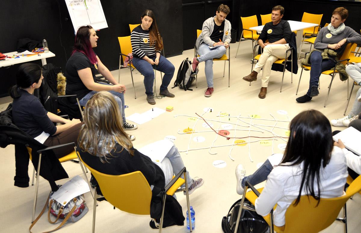 Die Arbeitsgemeinschaft der Jugenddienste ist zuallererst das Netzwerk der Jugenddienste. Innovation entsteht dann, wenn sich innerhalb eines Netzwerks neue Verbindungen bilden, wenn Ideen und Informationen von Knotenpunkt zu Knotenpunkt sausen wie Impulse auf Nervenbahnen. In insgesamt zwölf Workshops tauschten sich die Fachkräfte aus der Jugendarbeit zu verschiedenen Schwerpunktthemen aus. Erfahrungs- und Informationsaustausch, der für alle Mitarbeitende einen spürbaren Mehrwert erbrachte, da die Realitäten und Tätigkeitsfelder sehr vielfältig sind und wer Wissen teilt, kann auch das eigene Wissen vermehren.